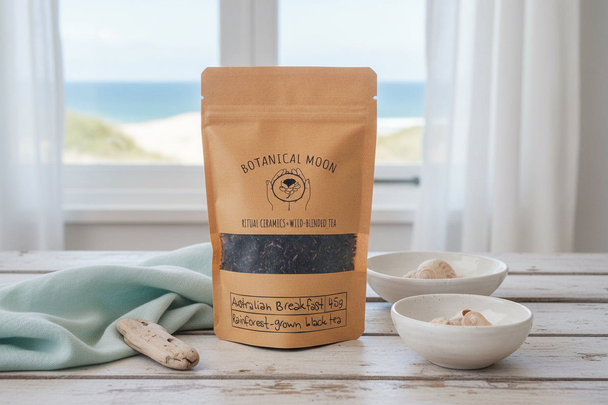 A naturally processed Australian-grown black tea that holds the heartfelt, sacred energy of the Daintree. A smooth, robust breakfast brew to sip with or without milk.